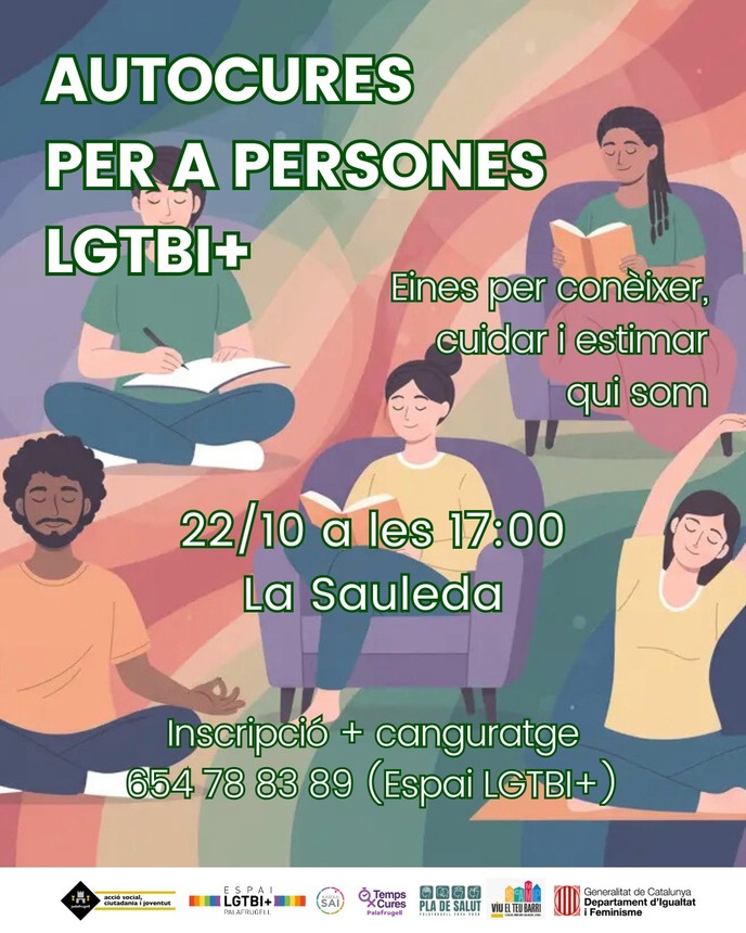El 22 d'octubre a les 17.00 h ens trobarem al Local Social de La Sauleda per pensar conjuntament quins reptes i oportunitats trobem a l'hora de cuidar-nos, i mirarem de prop les nostres necessitats.