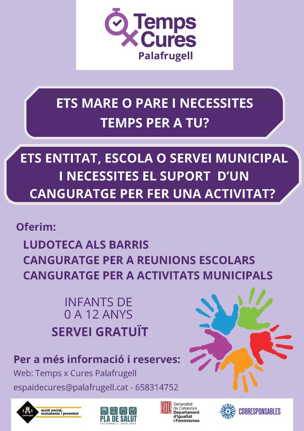 Als locals socials trobaràs el servei Temps x Cures, un espai de suport a les famílies i persones cuidadores. Aquest servei ofereix atenció puntual i gratuïta per ajudar-te a conciliar la vida personal, familiar i laboral.
